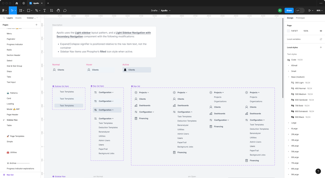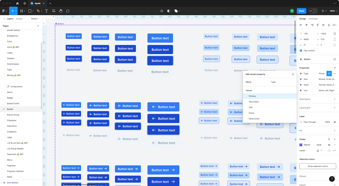 Because I was building for a small team with limited Figma experience, I kept the component structures as simple as possible (although I did go a little ham on the Buttons). That said, I was careful to avoid configurations that would make adding new variants a pain down the line.