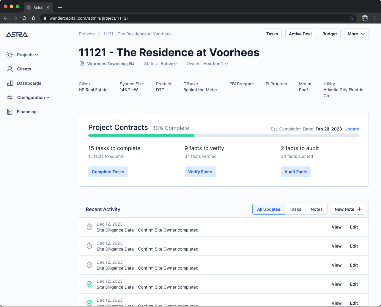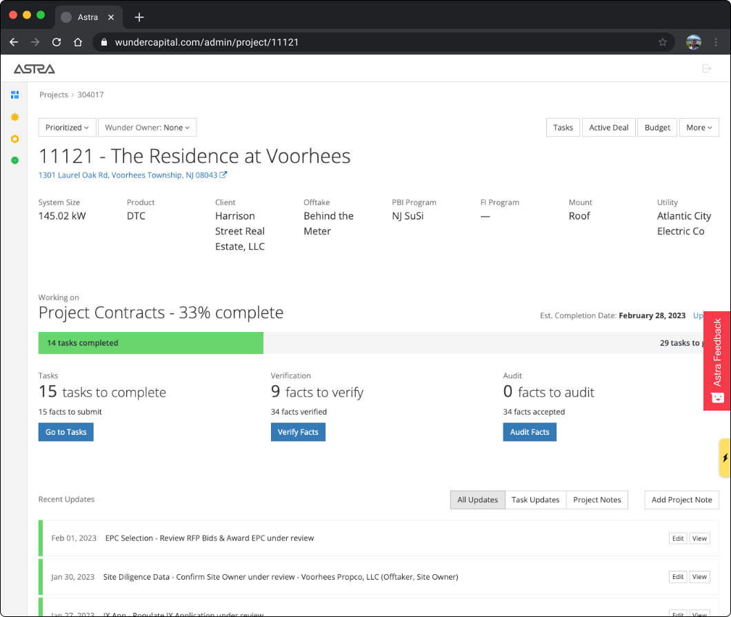 Founded in 2014, Wunder Capital is a solar startup making it easy for businesses, cities, and schools to finance and build clean energy systems. To help its small team achieve this at scale, Wunder created a software platform called Astra.