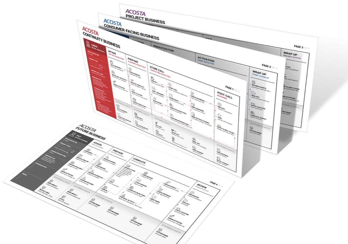 Once the high-level stories were in place, we helped the team work with stakeholders across Acosta to map out which backend systems would need to talk to Engage. We were riding high on a new wave of momentum... or so we thought.