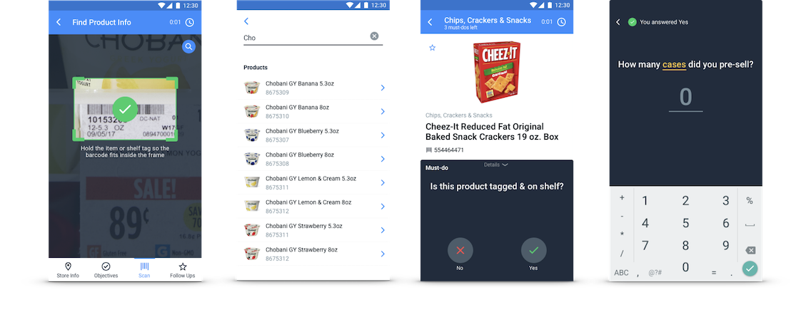I worked closely with engineering on a new task interaction design that allowed for finding products by scanning a barcode instead of searching and scrolling through endless product lists. We then prototyped a type-ahead search interaction for items missing barcodes or broken device cameras. We also simplified the in-store task interaction with a Yes/No response and follow-up model.